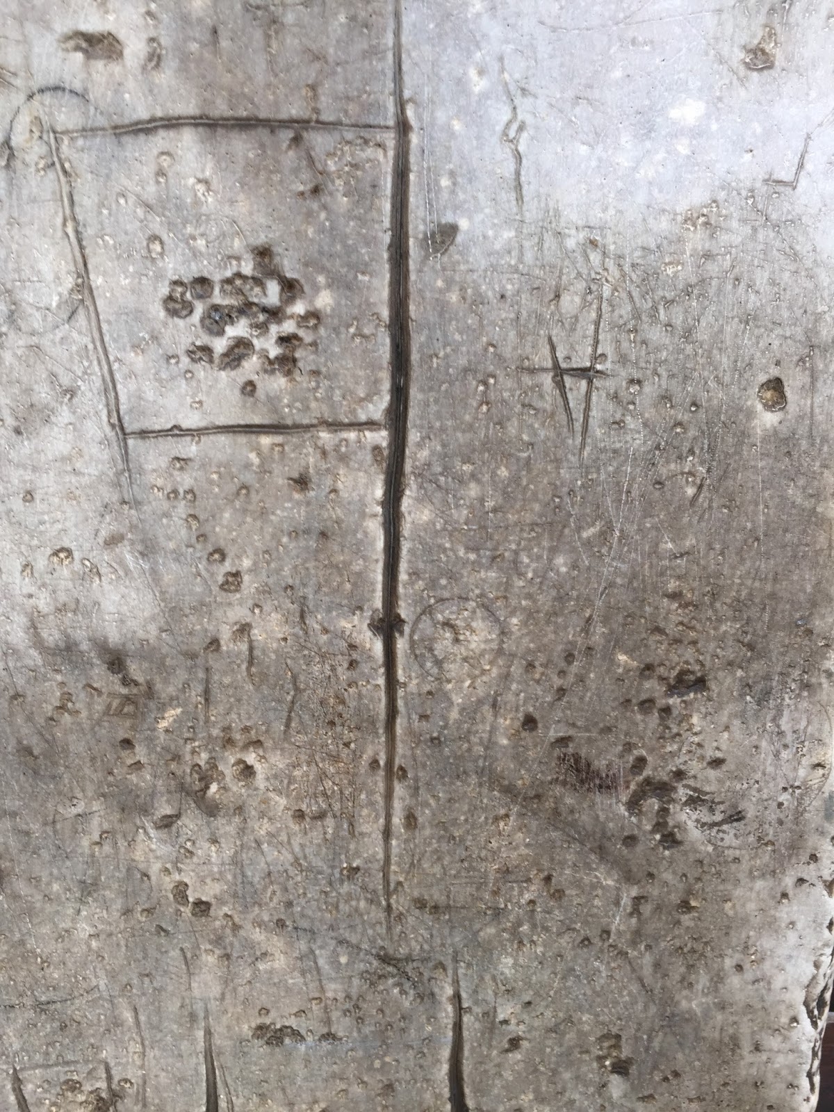 sono incisi dei graffiti particolari: tre fiori della vita a sei petali, e tre